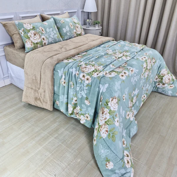 Sua face superior conta com estampas modernas e elegantes, que valorizam a decoração da cama, enquanto o verso em sherpa — com toque semelhante à lã de carneiro — proporciona um aquecimento intenso e uma sensação extremamente macia e aconchegante.